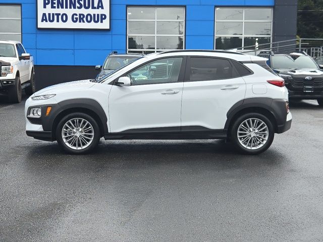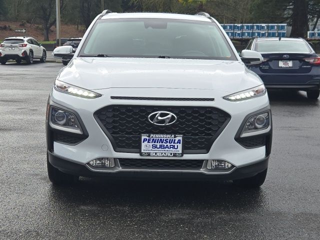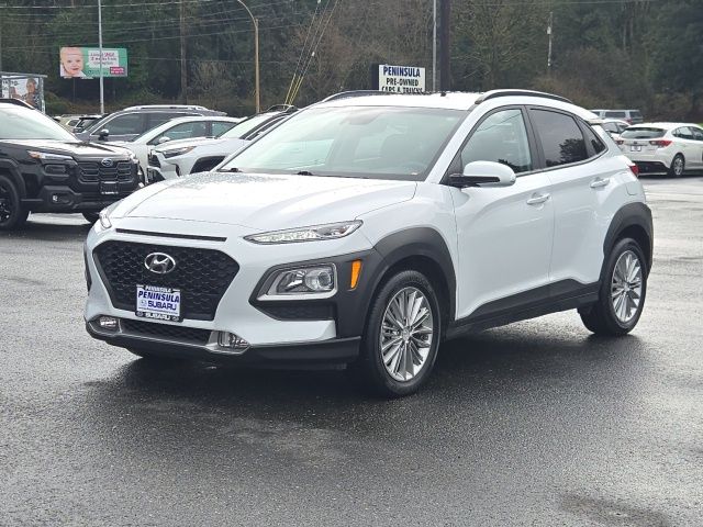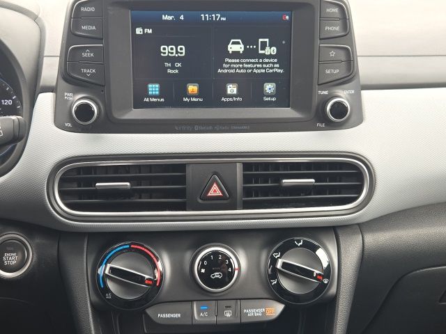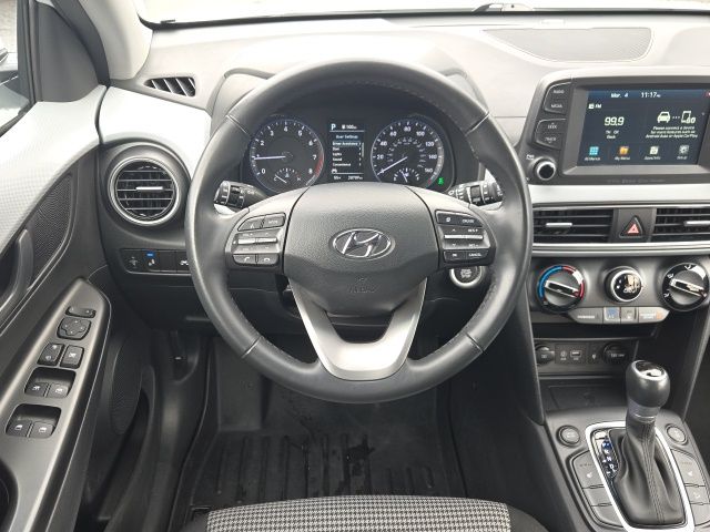 3.648 Axle Ratio, 4-Wheel Disc Brakes, 8 Speakers, ABS brakes, Air Conditioning, Alloy wheels, AM/FM radio: SiriusXM, Apple CarPlay & Android Auto, Brake assist, Bumpers: body-color, Carpeted Floor Mats, Cloth Seat Trim, Delay-off headlights, Driver door bin, Driver vanity mirror, Dual front impact airbags, Dual front side impact airbags, Electronic Stability Control, Emergency communication system: Blue Link Connected Care (3-year subscription), Exterior Parking Camera Rear, Four wheel independent suspension, Front anti-roll bar, Front Bucket Seats, Front Center Armrest, Front fog lights, Front reading lights, Fully automatic headlights, Heated door mirrors, Heated Front Bucket Seats, Heated front seats, Illuminated entry, Leather Shift Knob, Leather steering wheel, Low tire pressure warning, Occupant sensing airbag, Option Group 01, Outside temperature display, Overhead airbag, Overhead console, Panic alarm, Passenger door bin, Passenger vanity mirror, Power door mirrors, Power driver seat, Power moonroof, Power steering, Power windows, Radio: AM/FM/MP3/HD Radio/SiriusXM Audio System, Rear anti-roll bar, Rear Bumper Applique, Rear seat center armrest, Rear window defroster, Rear window wiper, Remote keyless entry, Reversible Cargo Tray, Roof rack: rails only, Security system, Speed control, Speed-sensing steering, Split folding rear seat, Spoiler, Steering wheel mounted audio controls, Tachometer, Telescoping steering wheel, Tilt steering wheel, Traction control, Trip computer, Turn signal indicator mirrors, Variably intermittent wipers, Wheels: 17 x 7.0J Alloy. 2020 Hyundai Kona SEL Plus Chalk White AWD I4 6-Speed Automatic with Shiftronic