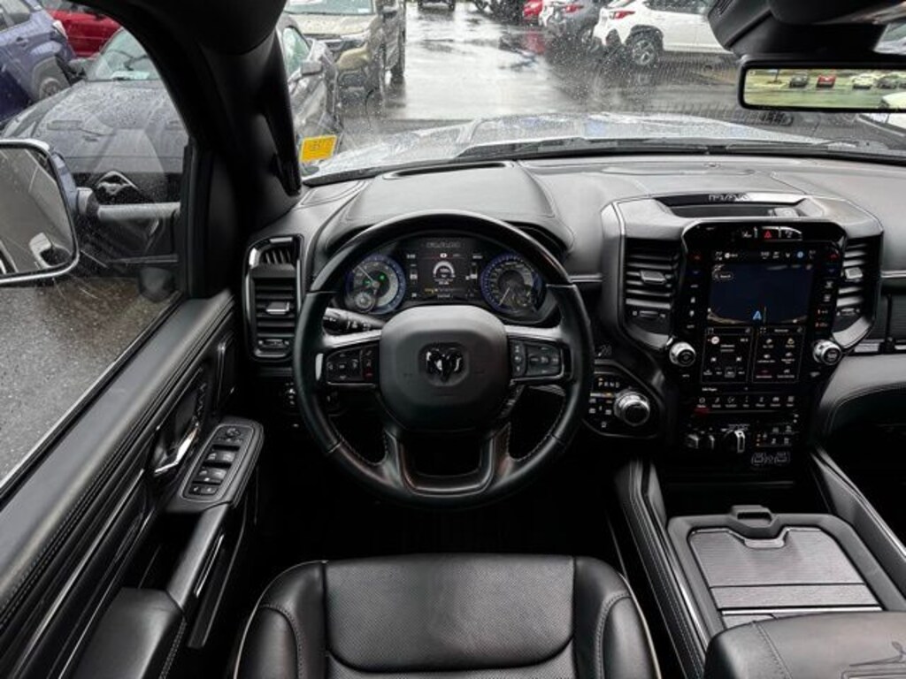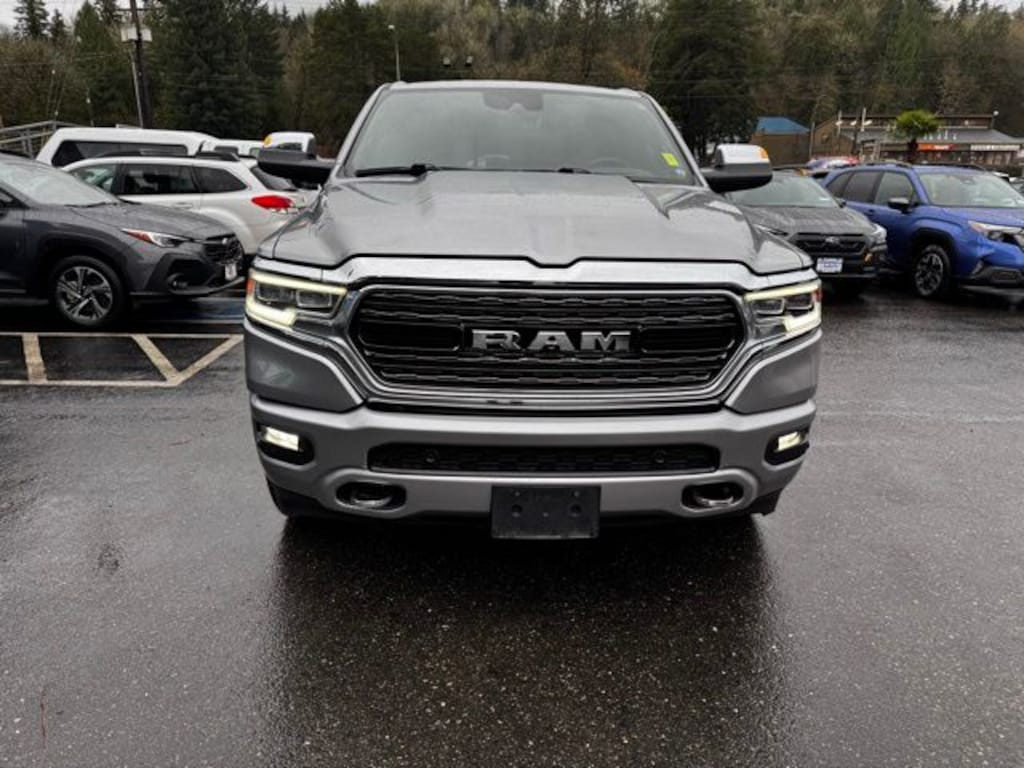 10 Speakers, 3.21 Rear Axle Ratio, 33 Gallon Fuel Tank, 4 Way Front Headrests, 4-Wheel Disc Brakes, 48V Belt Starter Generator, ABS brakes, Active Noise Control System, Adaptive Cruise Control w/Stop & Go, Adjustable pedals, Air Conditioning, Alloy wheels, AM/FM radio: SiriusXM with 360L, Apple CarPlay/Android Auto, Audio memory, Auto High-beam Headlights, Auto-dimming door mirrors, Auto-Dimming Exterior Driver Mirror, Auto-Dimming Exterior Passenger Mirror, Auto-dimming Rear-View mirror, Auto-leveling suspension, Automatic temperature control, Body Color Bumper Group, Body Color Front Bumper, Body Color Rear Bumper w/Step Pads, Bodyside moldings, Brake assist, Bucket Seats, Bumpers: chrome, Chrome Exterior Mirrors, Chrome Power-Fold Trailer Tow Mirrors, Compass, Convex Wide-Angle Mirror Insert, Delay-off headlights, Digital Rearview Mirror, Driver door bin, Driver Seat Memory, Driver vanity mirror, Dual front impact airbags, Dual front side impact airbags, Dual Rear Exhaust w/Bright Tips, Electronic Stability Control, Exterior Mirrors Courtesy Lamps, Exterior Mirrors w/Heating Element, Exterior Mirrors w/Memory, Exterior Mirrors w/Supplemental Signals, Front anti-roll bar, Front Bucket Seats, Front Center Armrest w/Storage, Front dual zone A/C, Front fog lights, Front License Plate Bracket, Front reading lights, Front Seat Back Map Pockets, Front wheel independent suspension, Full Length Premium Floor Console, Fully automatic headlights, Garage door transmitter, Genuine wood console insert, Genuine wood dashboard insert, Genuine wood door panel insert, Heads-Up Display, Heated door mirrors, Heated Front Seats, Heated front seats, Heated rear seats, Heated Second Row Seats, Heated Steering Wheel, Heated steering wheel, Heavy-Duty Engine Cooling, HEMI Badge, Illuminated entry, Lane Keep Assist, Leather steering wheel, LED CHMSL Lamp, Limited Level 1 Equipment Group, Low tire pressure warning, Manufacturer's Statement of Origin, Memory seat, Mirror Clearance/Running Lights, Mirror-Mounted Aux Reverse Lamps, Navigation System, Occupant sensing airbag, Outside temperature display, Overhead airbag, Overhead console, Panic alarm, Parallel & Perp Park Assist w/Stop, ParkView Rear Back-Up Camera, Passenger door bin, Passenger vanity mirror, Pedal memory, Pedestrian Emergency Braking, Power 4-Way Driver Lumbar Adjust, Power 4-Way Passenger Lumbar Adjust, Power 8-Way Driver & Passenger Seats, Power door mirrors, Power driver seat, Power passenger seat, Power steering, Power windows, Power-Folding Mirrors, Premium Leather Trimmed Bucket Seats, Quick Order Package 27M Limited, Radio data system, Radio: Uconnect 5 Nav w/12.0" Display, Rain sensing wipers, Rear 60/40 Folding Split Recline Seat, Rear anti-roll bar, Rear seat center armrest, Rear step bumper, Rear window defroster, Remote keyless entry, Security system, Speed control, Split folding rear seat, Steering wheel mounted audio controls, Surround View Camera System, Tachometer, Tailgate Ajar Warning Lamp, Telescoping steering wheel, Tilt steering wheel, Traction control, Trailer Brake Control, Trailer Light Check, Trailer Reverse Steering Control, Trailer Tire Pressure Monitoring System, Trailer Tow Group, Trailer Tow Mirrors, Trip computer, Turn signal indicator mirrors, Variably intermittent wipers, Ventilated Front Seats, Ventilated front seats, Ventilated Rear Seats, Voltmeter, Wheels: 20" x 9" Aluminum Painted/Polished. 2022 Ram 1500 Limited Billet Silver Metallic Clearcoat 4WD HEMI 5.7L V8 Multi Displacement VVT 8-Speed Automatic
