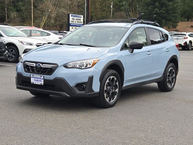17" Alloy Wheels, 3.90 Axle Ratio, 4 Speakers, 4-Wheel Disc Brakes, ABS brakes, Air Conditioning, All-Weather Floor Liners, Alloy wheels, AM/FM radio, Anti-whiplash front head restraints, Automatic temperature control, Brake assist, Bumpers: body-color, Cargo Cover, Cargo Tray, Cloth Upholstery, Driver door bin, Driver vanity mirror, Dual front impact airbags, Dual front side impact airbags, Electronic Stability Control, Exterior Parking Camera Rear, EyeSight System, Four wheel independent suspension, Front anti-roll bar, Front Bucket Seats, Front Center Armrest, Front reading lights, High Grade Combination Meter w/Color LCD Display, Illuminated entry, Knee airbag, Low tire pressure warning, Occupant sensing airbag, Outside temperature display, Overhead airbag, Overhead console, Overhead Console Shower Light, Panic alarm, Passenger door bin, Passenger vanity mirror, Power door mirrors, Power steering, Power windows, Radio data system, Radio: Subaru STARLINK 6.5" Multimedia System, Rear anti-roll bar, Rear Seat Reminder, Rear window defroster, Rear window wiper, Remote keyless entry, Security system, Speed control, Speed-sensing steering, Split folding rear seat, Spoiler, Standard Model (CVT), STARLINK/Apple CarPlay/Android Auto, Steering wheel mounted audio controls, Subaru STARLINK Smartphone Integration, Tachometer, Telescoping steering wheel, Tilt steering wheel, Tire Pressure Monitoring System, Traction control, Trip computer, Variably intermittent wipers. 2021 Subaru Crosstrek Base Khaki AWD 2.0L DOHC Lineartronic CVT