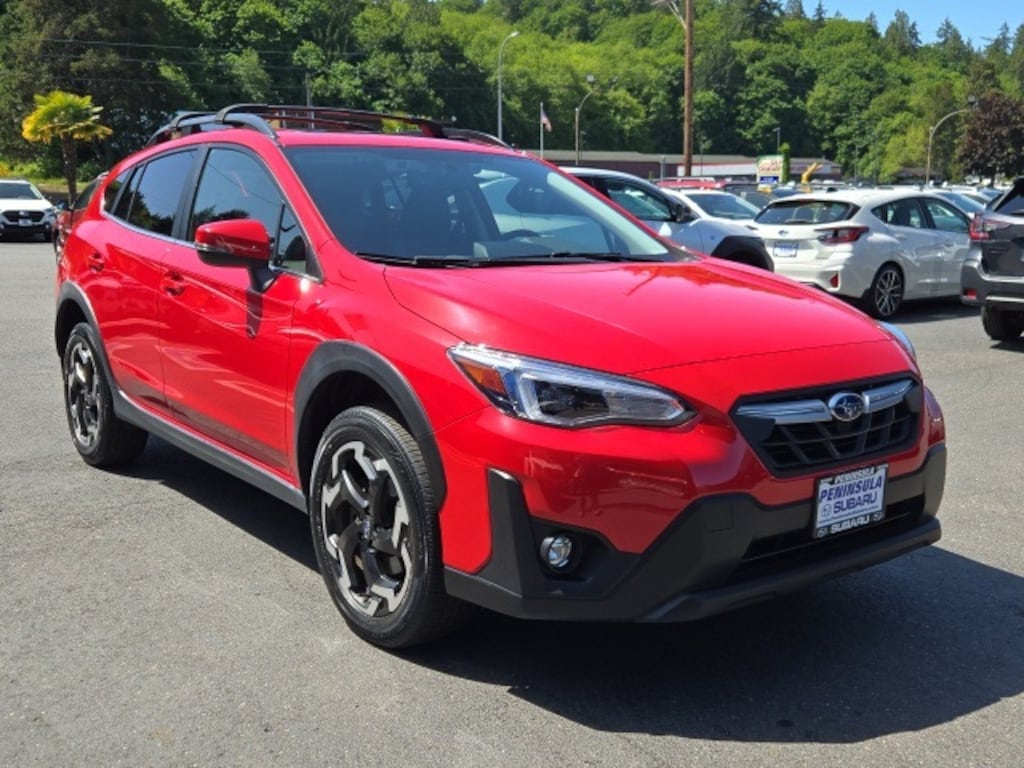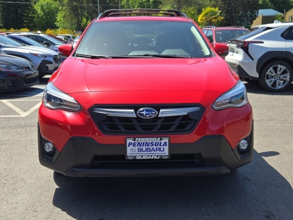 3.70 Axle Ratio, 4-Wheel Disc Brakes, 6 Speakers, ABS brakes, Aero Crossbar Set, Air Conditioning, All-Weather Floor Liners, Alloy wheels, AM/FM radio: SiriusXM, Anti-whiplash front head restraints, Auto High-beam Headlights, Auto-Dimming Exterior Mirror w/Approach Light, Auto-Dimming Mirror w/Compass & HomeLink, Automatic temperature control, Brake assist, Bumpers: body-color, CD player, Driver door bin, Driver vanity mirror, Dual front impact airbags, Dual front side impact airbags, Electronic Stability Control, Emergency communication system: STARLINK Safety and Security (Subscription Required), Exterior Parking Camera Rear, Four wheel independent suspension, Front anti-roll bar, Front Bucket Seats, Front Center Armrest, Front fog lights, Front reading lights, Fully automatic headlights, harman/kardon Speaker System, Heated door mirrors, Heated Front Bucket Seats, Heated front seats, Illuminated entry, Knee airbag, Leather-Trimmed Upholstery, Low tire pressure warning, Map & Dome Lights LED Upgrade, Moonroof Package 2, Occupant sensing airbag, Outside temperature display, Overhead airbag, Overhead console, Panic alarm, Passenger door bin, Passenger vanity mirror, Popular Package #3, Power door mirrors, Power driver seat, Power Moonroof, Power steering, Power windows, Radio data system, Radio: Subaru STARLINK 8.0" Multimedia Nav System, Radio: Subaru STARLINK 8.0" Multimedia Plus System, Rear anti-roll bar, Rear Bumper Cover, Rear seat center armrest, Rear window defroster, Rear window wiper, Remote keyless entry, Security system, Speed control, Speed-sensing steering, Split folding rear seat, Spoiler, STARLINK/Apple CarPlay/Android Auto, Steering wheel mounted audio controls, Subaru STARLINK Smartphone Integration, Tachometer, Telescoping steering wheel, Tilt steering wheel, Traction control, Trip computer, Turn signal indicator mirrors, Variably intermittent wipers, Wheels: 18" Alloy Machine Finish. 2021 Subaru Crosstrek Limited Pure Red AWD 2.5L DOHC Lineartronic CVT