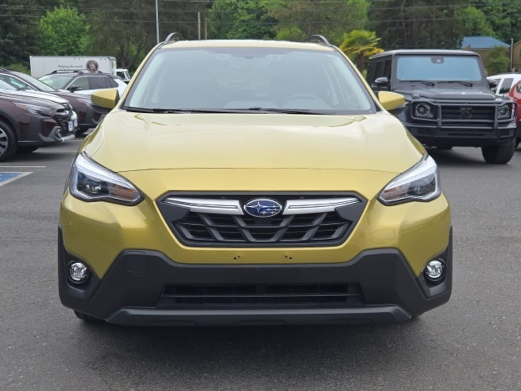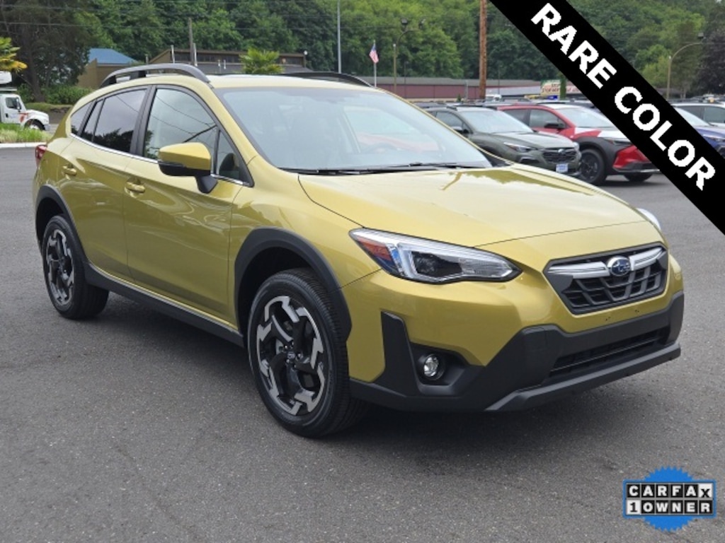 3.70 Axle Ratio, 4-Wheel Disc Brakes, 6 Speakers, ABS brakes, Air Conditioning, All-Weather Floor Liners, Alloy wheels, AM/FM radio: SiriusXM, Anti-whiplash front head restraints, Auto High-beam Headlights, Auto-Dimming Mirror w/Compass & HomeLink, Automatic temperature control, Brake assist, Bumpers: body-color, CD player, Driver door bin, Driver vanity mirror, Dual front impact airbags, Dual front side impact airbags, Electronic Stability Control, Emergency communication system: STARLINK Safety and Security (Subscription Required), Exterior Parking Camera Rear, Four wheel independent suspension, Front anti-roll bar, Front Bucket Seats, Front Center Armrest, Front fog lights, Front reading lights, Fully automatic headlights, harman/kardon Speaker System, Heated door mirrors, Heated Front Bucket Seats, Heated front seats, Illuminated entry, Knee airbag, Leather-Trimmed Upholstery, Low tire pressure warning, Moonroof Package 2, Occupant sensing airbag, Outside temperature display, Overhead airbag, Overhead console, Panic alarm, Passenger door bin, Passenger vanity mirror, Power door mirrors, Power driver seat, Power Moonroof, Power steering, Power windows, Radio data system, Radio: Subaru STARLINK 8.0" Multimedia Nav System, Radio: Subaru STARLINK 8.0" Multimedia Plus System, Rear anti-roll bar, Rear Bumper Cover, Rear seat center armrest, Rear Seatback Protector, Rear window defroster, Rear window wiper, Remote keyless entry, Security system, Speed control, Speed-sensing steering, Split folding rear seat, Spoiler, STARLINK/Apple CarPlay/Android Auto, Steering wheel mounted audio controls, Subaru STARLINK Smartphone Integration, Tachometer, Telescoping steering wheel, Tilt steering wheel, Traction control, Trip computer, Turn signal indicator mirrors, Variably intermittent wipers, Wheels: 18" x 7.0J Alloy Black w/Machine Finish. 2022 Subaru Crosstrek Limited Yellow AWD 2.5L 4-Cylinder DOHC 16V Lineartronic CVT