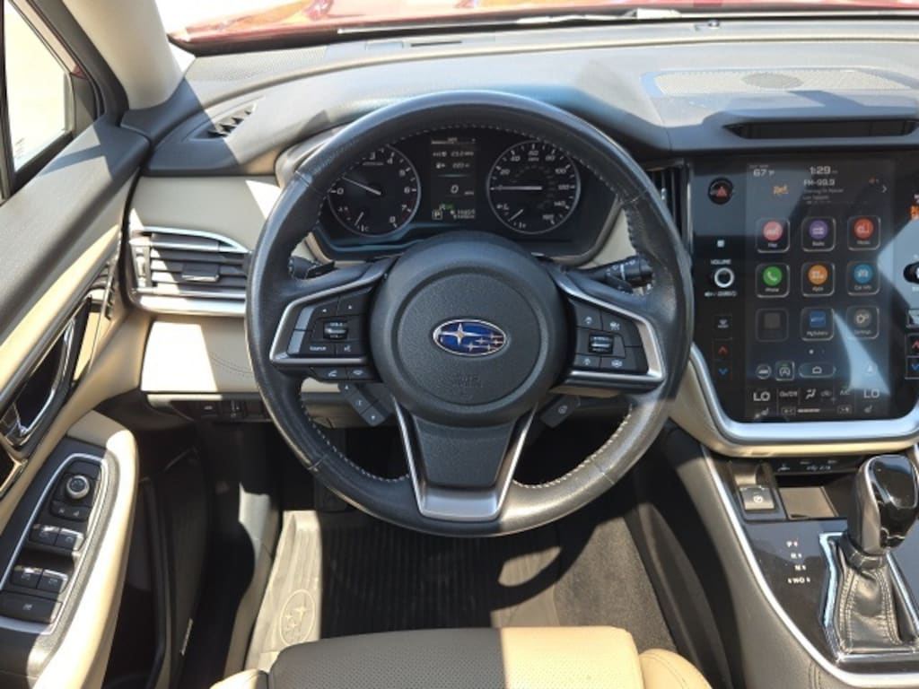 12 Speakers, 4-Wheel Disc Brakes, ABS brakes, Air Conditioning, All-Weather Floor Liners, Alloy wheels, AM/FM radio: SiriusXM, Anti-whiplash front head restraints, Auto High-beam Headlights, Auto-dimming Rear-View mirror, Automatic temperature control, Brake assist, Bumpers: body-color, Cargo Tray, Compass, Driver door bin, Driver vanity mirror, Dual front impact airbags, Dual front side impact airbags, Electronic Stability Control, Emergency communication system, Exterior Auto-Dimming Mirror w/Approach Light, Exterior Parking Camera Rear, Four wheel independent suspension, Front anti-roll bar, Front Bucket Seats, Front Center Armrest w/Storage, Front dual zone A/C, Front fog lights, Front reading lights, Fully automatic headlights, Garage door transmitter: HomeLink, harman/kardon® Speakers, Heated door mirrors, Heated Front Bucket Seats, Heated front seats, Heated rear seats, Heated steering wheel, HVAC memory, Illuminated entry, Knee airbag, Leather Shift Knob, Leather steering wheel, Low tire pressure warning, Memory seat, Navigation System, Occupant sensing airbag, Outside temperature display, Overhead airbag, Overhead console, Panic alarm, Passenger door bin, Passenger vanity mirror, Perforated Leather-Trimmed Upholstery, Popular Package #3, Power door mirrors, Power driver seat, Power moonroof, Power passenger seat, Power steering, Power windows, Radio: Subaru STARLINK 11.6" Multimedia Nav System, Rear anti-roll bar, Rear Bumper Applique, Rear seat center armrest, Rear Seatback Protector, Rear window defroster, Remote keyless entry, Security system, Speed control, Speed-sensing steering, Splash Guards, Split folding rear seat, Standard Model, STARLINK/Apple CarPlay/Android Auto, Steering wheel mounted audio controls, Tachometer, Telescoping steering wheel, Tilt steering wheel, Traction control, Trip computer, Turn signal indicator mirrors, Variably intermittent wipers, Wheels: 18" x 7.5J Aluminum-Alloy Black. 2022 Subaru Legacy Limited XT Red AWD 2.4L 4-Cylinder DOHC 16V Lineartronic CVT