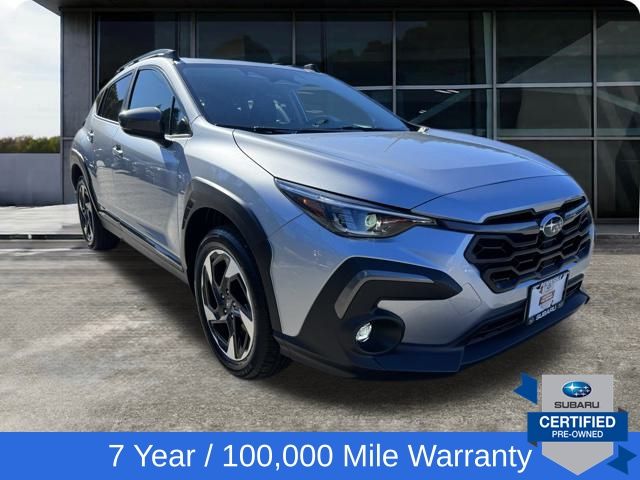 4-Wheel Disc Brakes, 6 Speakers, ABS brakes, Air Conditioning, Alloy wheels, AM/FM radio: SiriusXM, Anti-whiplash front head restraints, Auto High-beam Headlights, Automatic temperature control, Brake assist, Bumpers: body-color, Driver door bin, Driver vanity mirror, Dual front impact airbags, Dual front side impact airbags, Electronic Stability Control, Emergency communication system, Exterior Parking Camera Rear, Four wheel independent suspension, Front anti-roll bar, Front Bucket Seats, Front Center Armrest, Front dual zone A/C, Front fog lights, Front reading lights, Fully automatic headlights, Heated door mirrors, Heated Front Bucket Seats, Heated front seats, Illuminated entry, Knee airbag, Leather Shift Knob, Leather steering wheel, Leather-Trimmed Upholstery, Low tire pressure warning, Occupant sensing airbag, Outside temperature display, Overhead airbag, Overhead console, Panic alarm, Passenger door bin, Passenger vanity mirror, Power door mirrors, Power driver seat, Power steering, Power windows, Radio data system, Radio: Subaru 11.6" Multimedia Plus System, Rear anti-roll bar, Rear seat center armrest, Rear window defroster, Rear window wiper, Remote keyless entry, Security system, Speed control, Speed-sensing steering, Split folding rear seat, Spoiler, Steering wheel mounted audio controls, Tachometer, Telescoping steering wheel, Tilt steering wheel, Traction control, Trip computer, Turn signal indicator mirrors, Variably intermittent wipers, Wheels: 18" x 7.0" J Machine Finish Aluminum-Alloy. 2025 Subaru Crosstrek Limited Ice Silver Metallic AWD 2.5L 4-Cylinder DOHC 16V Lineartronic CVT