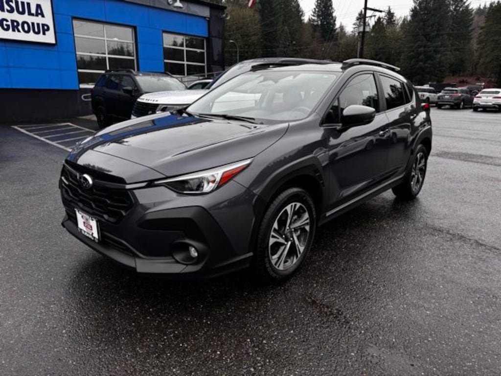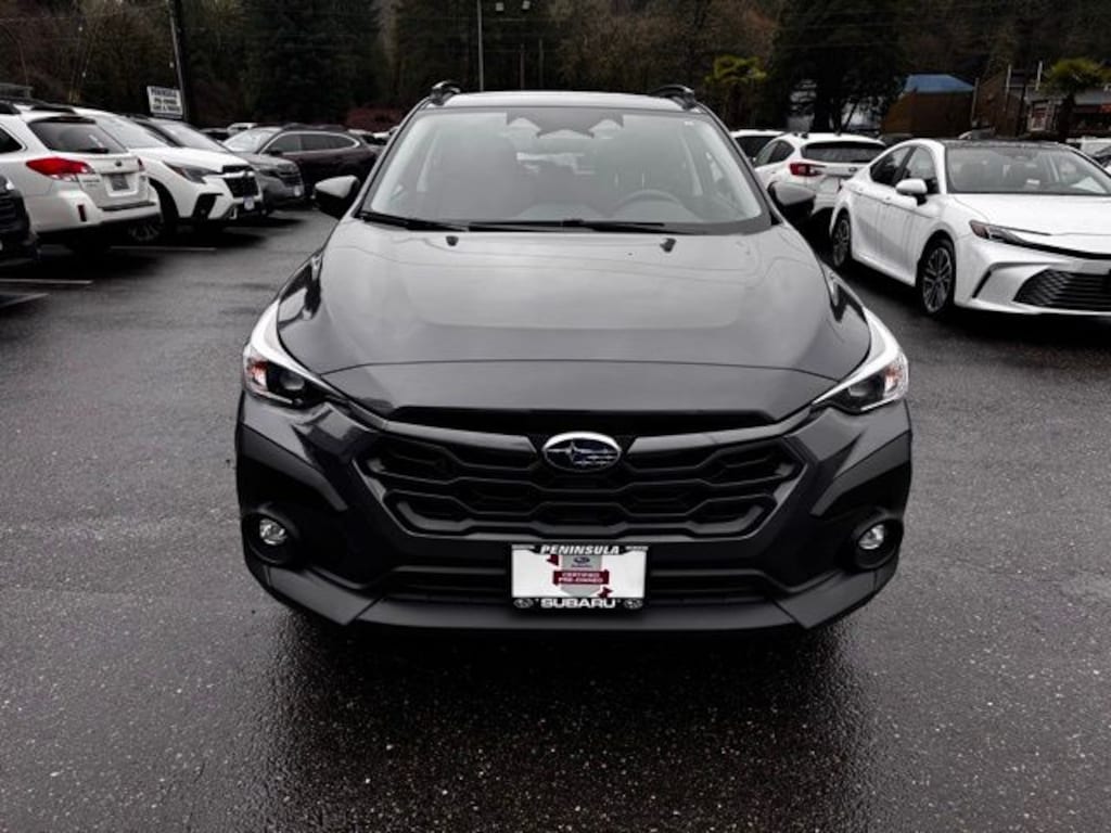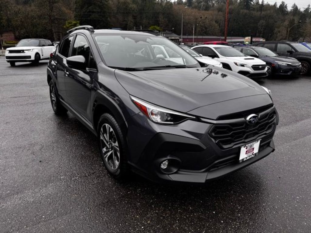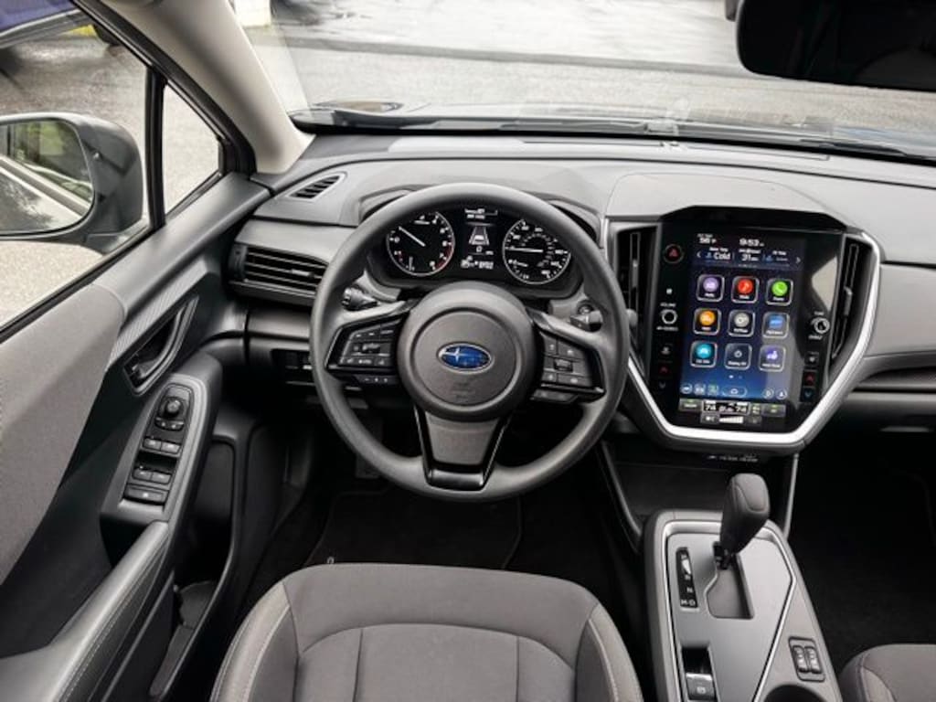 4-Wheel Disc Brakes, 6 Speakers, ABS brakes, Air Conditioning, Alloy wheels, AM/FM radio: SiriusXM, Anti-whiplash front head restraints, Auto High-beam Headlights, Automatic temperature control, Brake assist, Bumpers: body-color, Cloth Upholstery, Driver door bin, Driver vanity mirror, Dual front impact airbags, Dual front side impact airbags, Electronic Stability Control, Emergency communication system, Exterior Parking Camera Rear, Four wheel independent suspension, Front anti-roll bar, Front Bucket Seats, Front Center Armrest, Front dual zone A/C, Front fog lights, Front reading lights, Fully automatic headlights, Illuminated entry, Knee airbag, Low tire pressure warning, Occupant sensing airbag, Outside temperature display, Overhead airbag, Overhead console, Panic alarm, Passenger door bin, Passenger vanity mirror, Power door mirrors, Power steering, Power windows, Radio data system, Radio: Subaru 11.6" Multimedia Plus System, Rear anti-roll bar, Rear seat center armrest, Rear window defroster, Rear window wiper, Remote keyless entry, Security system, Speed control, Speed-sensing steering, Split folding rear seat, Spoiler, Steering wheel mounted audio controls, Tachometer, Telescoping steering wheel, Tilt steering wheel, Traction control, Trip computer, Turn signal indicator mirrors, Variably intermittent wipers, Wheels: 17" x 7.0" J Machine Finish Aluminum-Alloy. 2025 Subaru Crosstrek Premium Gray AWD 2.5L 4-Cylinder DOHC 16V Lineartronic CVT