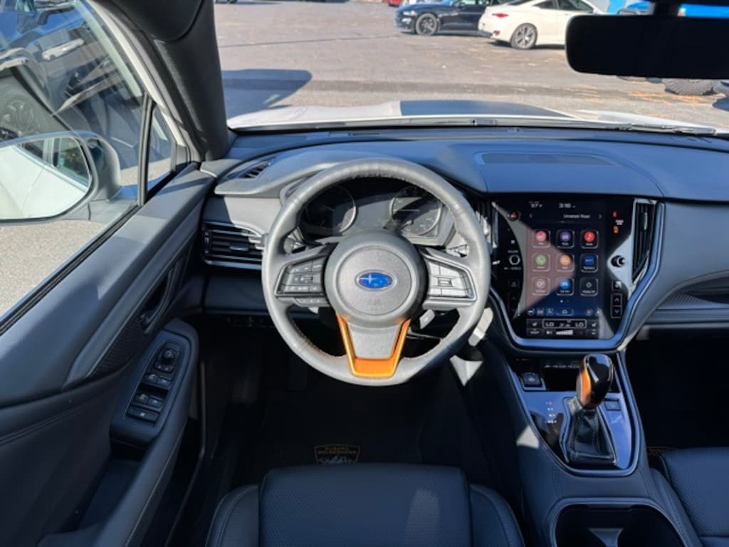 12 Speakers, 4-Wheel Disc Brakes, ABS brakes, Air Conditioning, Alloy wheels, AM/FM radio: SiriusXM with 360L, Apple CarPlay & Android Auto, Auto High-beam Headlights, Auto-Dimming Exterior Mirror w/Approach Light, Auto-dimming Rear-View mirror, Automatic temperature control, Brake assist, Cargo Sidewall Protector, Compass, Door Projector Light, Driver door bin, Driver vanity mirror, Dual front impact airbags, Dual front side impact airbags, Electronic Stability Control, Emergency communication system: MySubaru Safety (3-year free trial), Exterior Parking Camera Rear, Four wheel independent suspension, Front anti-roll bar, Front Bucket Seats, Front Center Armrest w/Storage, Front dual zone A/C, Front fog lights, Front reading lights, Fully automatic headlights, Garage door transmitter: HomeLink, harman/kardon® Speakers, Heated door mirrors, Heated Front Bucket Seats, Heated front seats, Heated rear seats, Heated steering wheel, Illuminated entry, Knee airbag, Leather steering wheel, LED Upgrade, Low tire pressure warning, Occupant sensing airbag, Outside temperature display, Overhead airbag, Overhead console, Panic alarm, Passenger door bin, Passenger vanity mirror, Power door mirrors, Power driver seat, Power Liftgate, Power Moonroof, Power Moonroof & Navigation & RAB, Power passenger seat, Power steering, Power windows, Radio: Subaru 11.6" Multimedia Plus System, Radio: Subaru 11.6" Multimedia System w/Navigation, Rear anti-roll bar, Rear seat center armrest, Rear window defroster, Rear window wiper, Remote keyless entry, Reverse Automatic Braking (RAB) System, Roof rack, Security system, Speed control, Speed-sensing steering, Splash Guards, Split folding rear seat, Spoiler, StarTex-Trimmed Upholstery, Steering wheel mounted audio controls, Tachometer, Telescoping steering wheel, Tilt steering wheel, Traction control, Trip computer, Turn signal indicator mirrors, Variably intermittent wipers, Wheels: 17" x 7J Matte Black Aluminum-Alloy. 2025 Subaru Outback Wilderness Crystal White Pearl AWD 2.4L DOHC CVT Lineartronic
