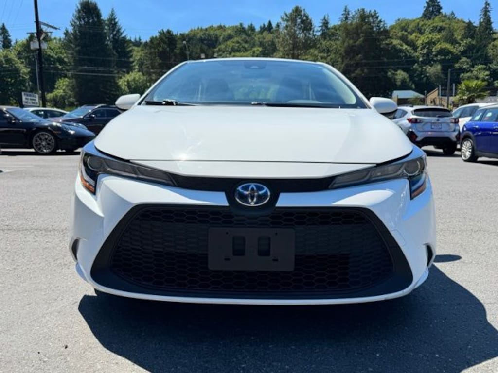 1.8L DOHC 16V VVT, 4-Wheel Disc Brakes, 6 Speakers, ABS brakes, Air Conditioning, Alloy wheels, AM/FM radio: SiriusXM, Apple CarPlay/Android Auto, Auto High-beam Headlights, Automatic temperature control, Brake assist, Bumpers: body-color, Delay-off headlights, Driver door bin, Driver vanity mirror, Dual front impact airbags, Dual front side impact airbags, Electronic Stability Control, Emergency communication system: Safety Connect with 1-year trial, Exterior Parking Camera Rear, Four wheel independent suspension, Front anti-roll bar, Front Bucket Seats, Front Center Armrest, Front reading lights, Fully automatic headlights, Heated door mirrors, Illuminated entry, Knee airbag, Low tire pressure warning, Occupant sensing airbag, Outside temperature display, Overhead airbag, Panic alarm, Passenger door bin, Passenger vanity mirror, Power door mirrors, Power steering, Power windows, Premium Fabric Seat Trim, Radio data system, Radio: Audio AM/FM, Rear anti-roll bar, Rear seat center armrest, Rear side impact airbag, Rear window defroster, Remote keyless entry, Security system, Speed control, Split folding rear seat, Steering wheel mounted audio controls, Tachometer, Telescoping steering wheel, Tilt steering wheel, Traction control, Trip computer, Variably intermittent wipers, Wheels: 15" Alloy w/Cover, 1.8L DOHC 16V VVT. 2022 Toyota Corolla Hybrid LE White FWD 1.8L DOHC 16V VVT CVT