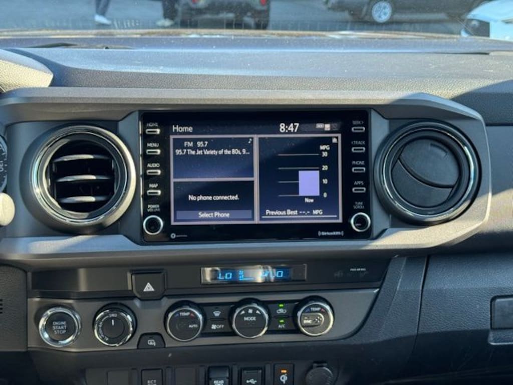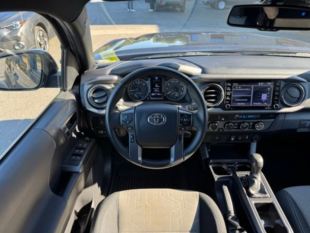 4WD, 120V/400W Deck Mounted AC Power, 6 Speakers, ABS brakes, Air Conditioning, Alloy wheels, AM/FM radio: SiriusXM, Anti-whiplash front head restraints, Apple CarPlay/Android Auto, Auto High-beam Headlights, Auto-dimming Rear-View mirror, Auto-Dimming Rearview Mirror w/HomeLink, Automatic temperature control, Axle Ratio: 3.91, Black Overfenders, Brake assist, Bumpers: body-color, Color-Keyed Rear Bumper, Driver door bin, Dual front impact airbags, Dual front side impact airbags, Electronic Stability Control, Emergency communication system: Safety Connect with 1-year trial, Engine Immobilizer, Exterior Parking Camera Rear, Fabric Seat Trim (FD), Front anti-roll bar, Front Bucket Seats, Front Center Armrest, Front dual zone A/C, Front fog lights, Front reading lights, Front Seats, Front wheel independent suspension, Heated door mirrors, Illuminated entry, Knee airbag, Leather Seat Trim, Leather Shift Knob, LED Daytime Running Lights & Fog Lights, Low tire pressure warning, Occupant sensing airbag, Outside temperature display, Overhead airbag, Overhead console, Panic alarm, Passenger door bin, Power Color Turn Mirror, Power door mirrors, Power driver seat, Power steering, Power windows, Radio: AM/FM Radio, Rear step bumper, Remote keyless entry, Security system, Smart Key w/Push Button Start, Speed control, Speed-sensing steering, Split folding rear seat, Steering wheel mounted audio controls, Tachometer, Telescoping steering wheel, Tilt steering wheel, Traction control, TRD Off Road Package, Trip computer, Turn signal indicator mirrors, Variably intermittent wipers, Wheels: 16" x 7J Machined Contrast Alloy, 4WD. 2022 Toyota Tacoma TRD Off-Road V6 Gray 4WD 3.5L V6 PDI DOHC 24V LEV3-ULEV70 278hp 6-Speed Automatic